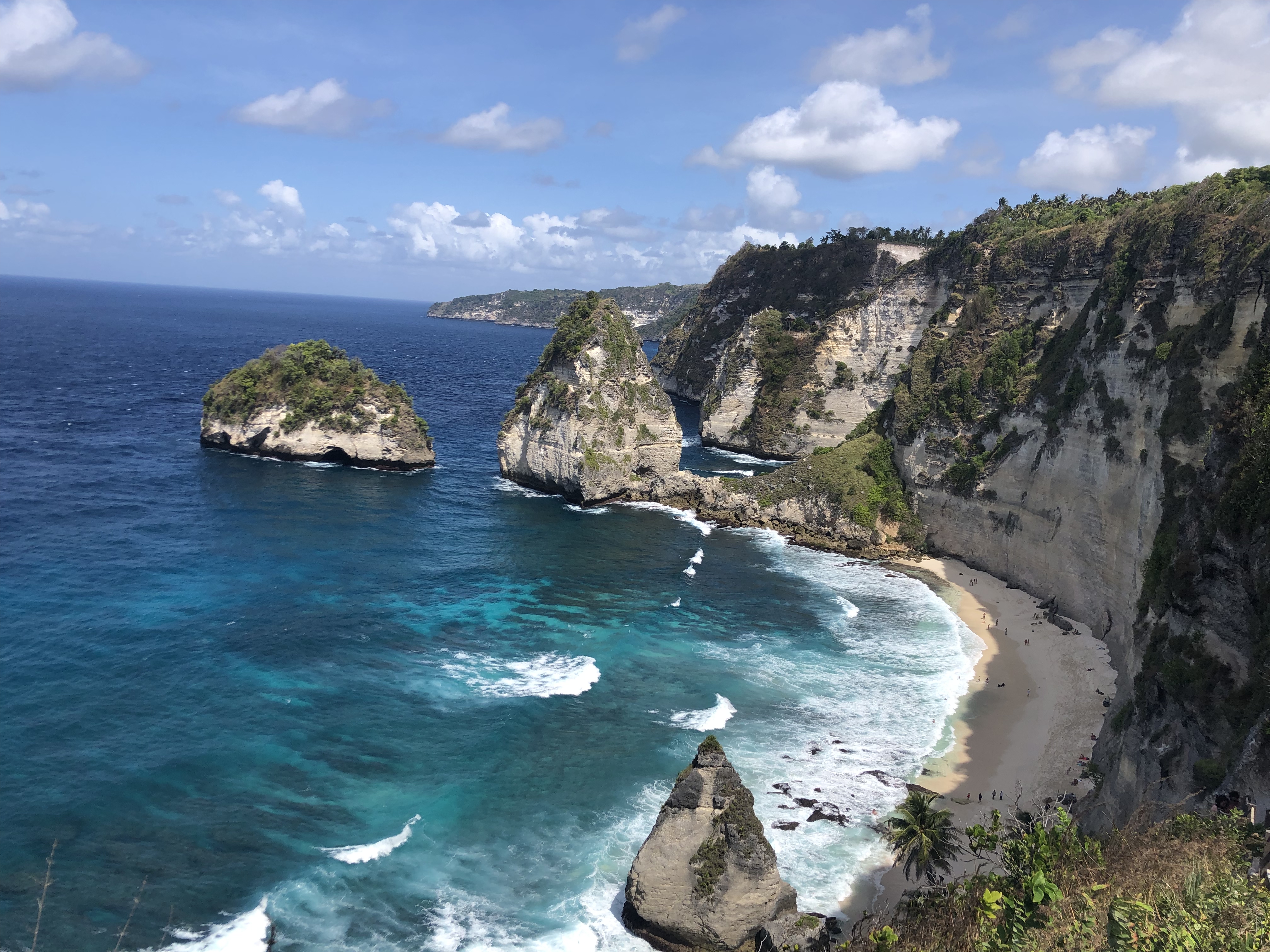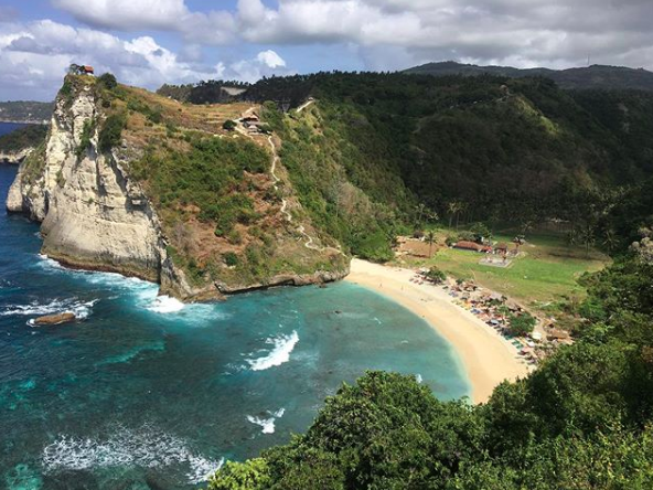 Hampir seluruh pantai yang ada di Nusa Penida sangat sulit untuk diakses salah satunya adalah Atuh Beach. Sangat cantik melihat Atuh Beach dari ketinggian dengan payung pantai yang berwarna warni menghiasi bibir pantai. Dari kejauaha terlihat Atuh Beach sangat cocok untuk bermalas malasan sambil menikmati semilir angin pantai.